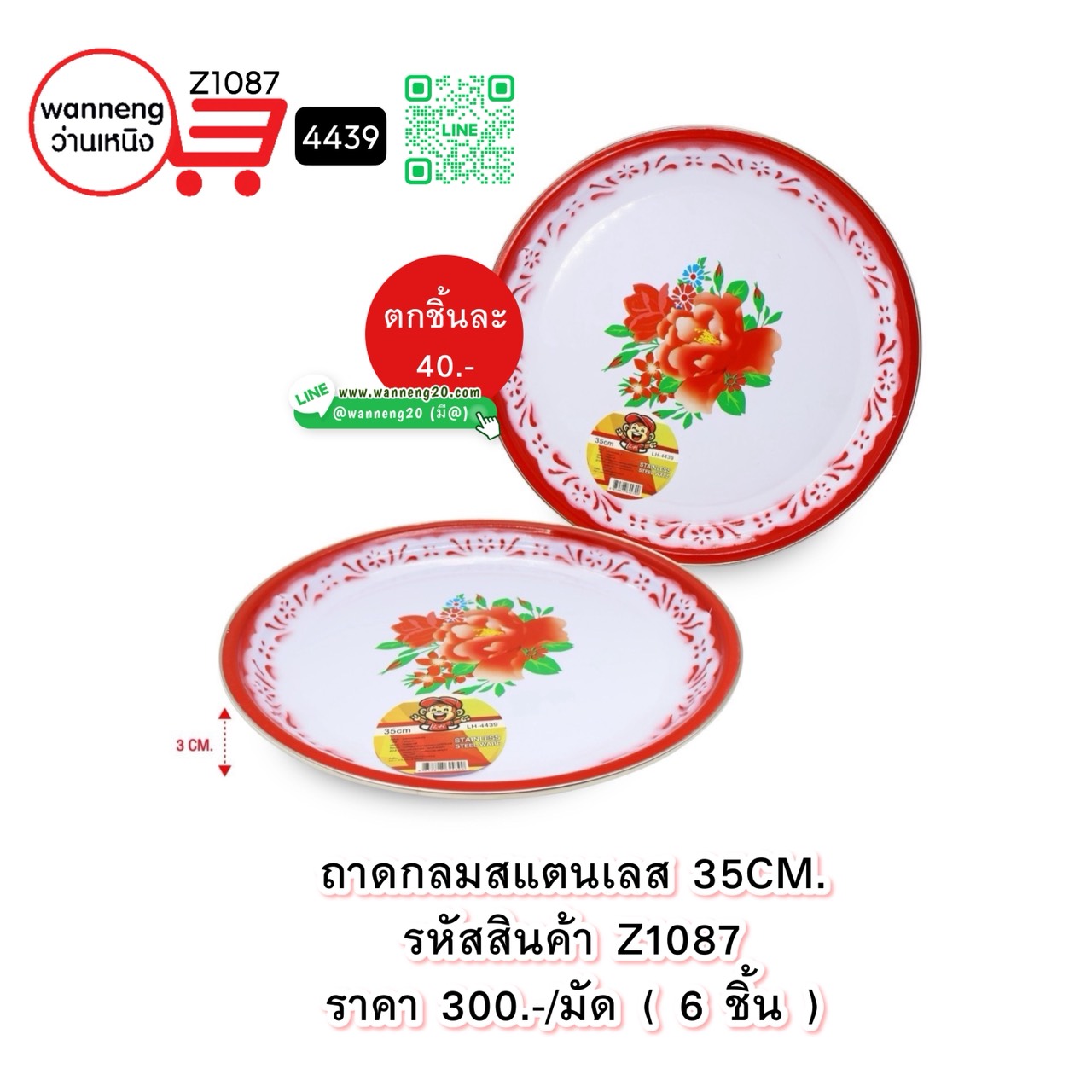 Z1087 ถาดกลมสแตนเลส 35 CM. 4439 1 มัด 6 ชิ้น