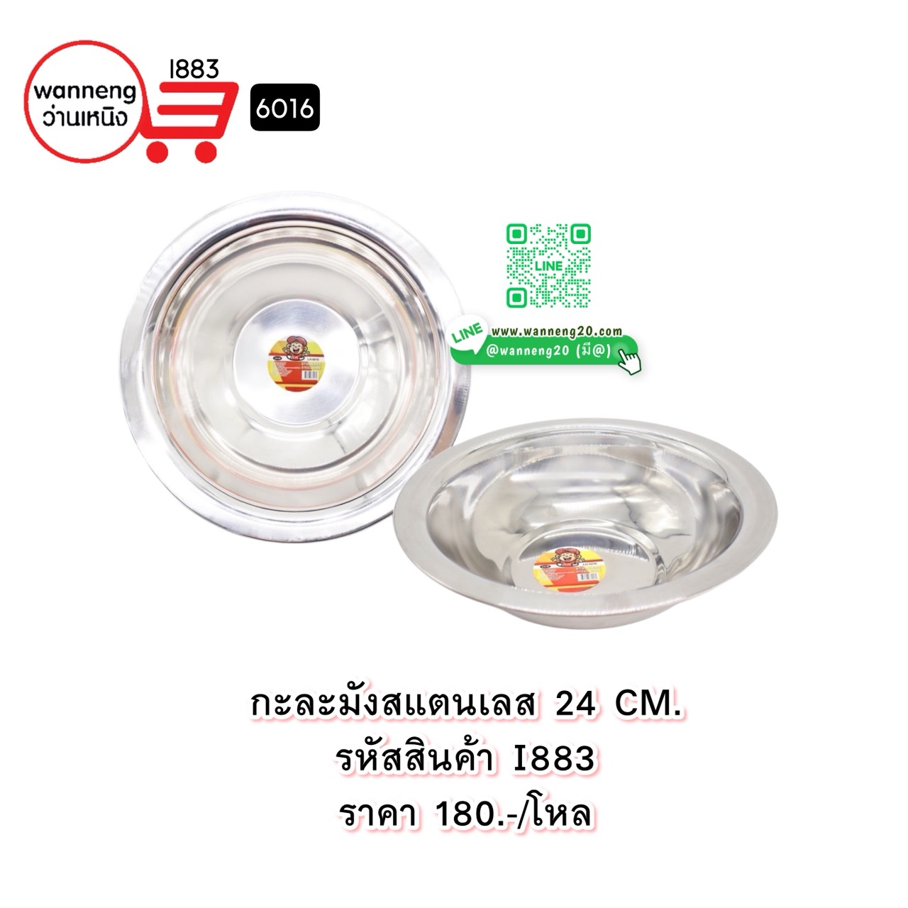 I883 กะละมังสแตนเลส 24CM. 6016 1 โหล