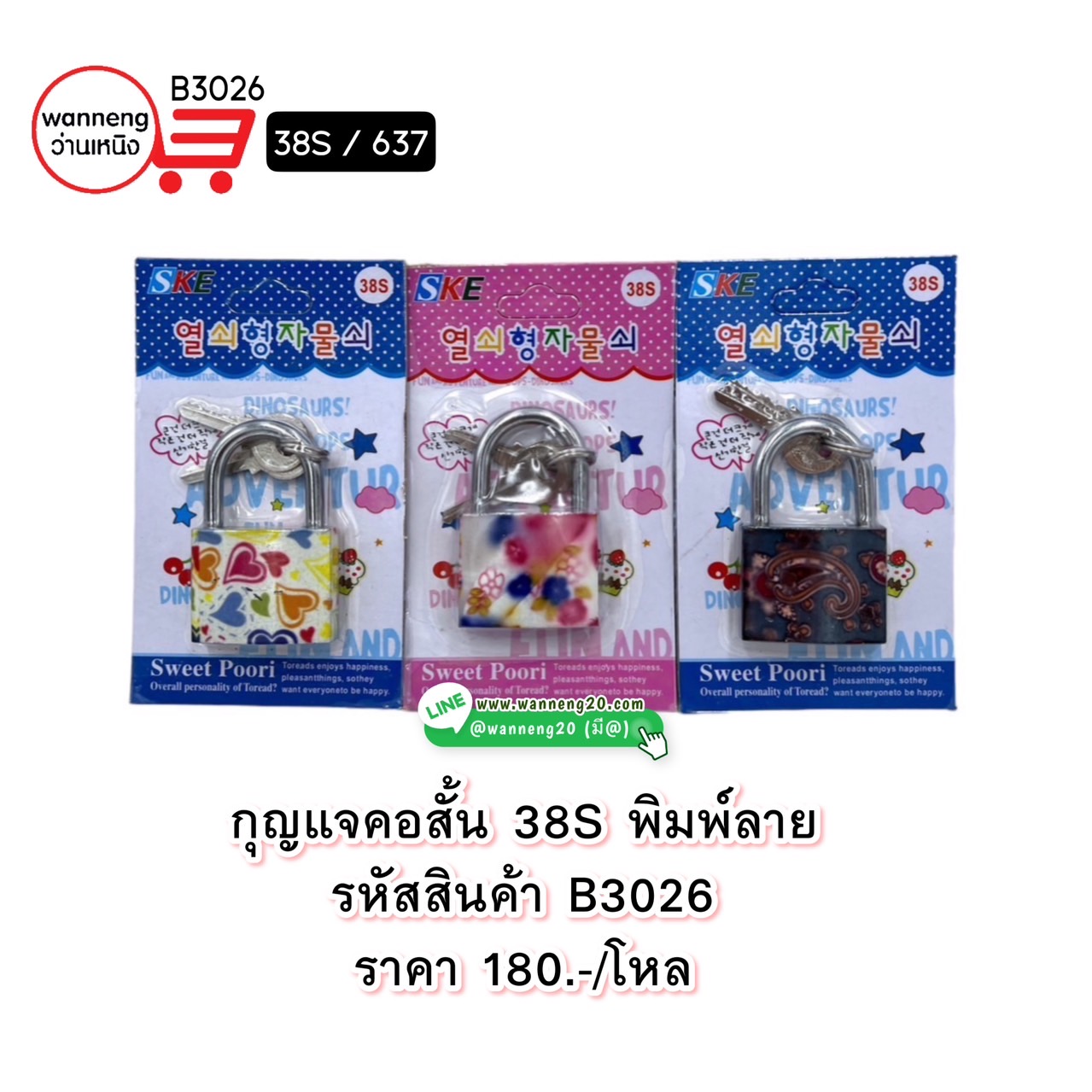 B3026 กุญแจคอสั้น 38S พิมพ์ลาย 637 1 โหล