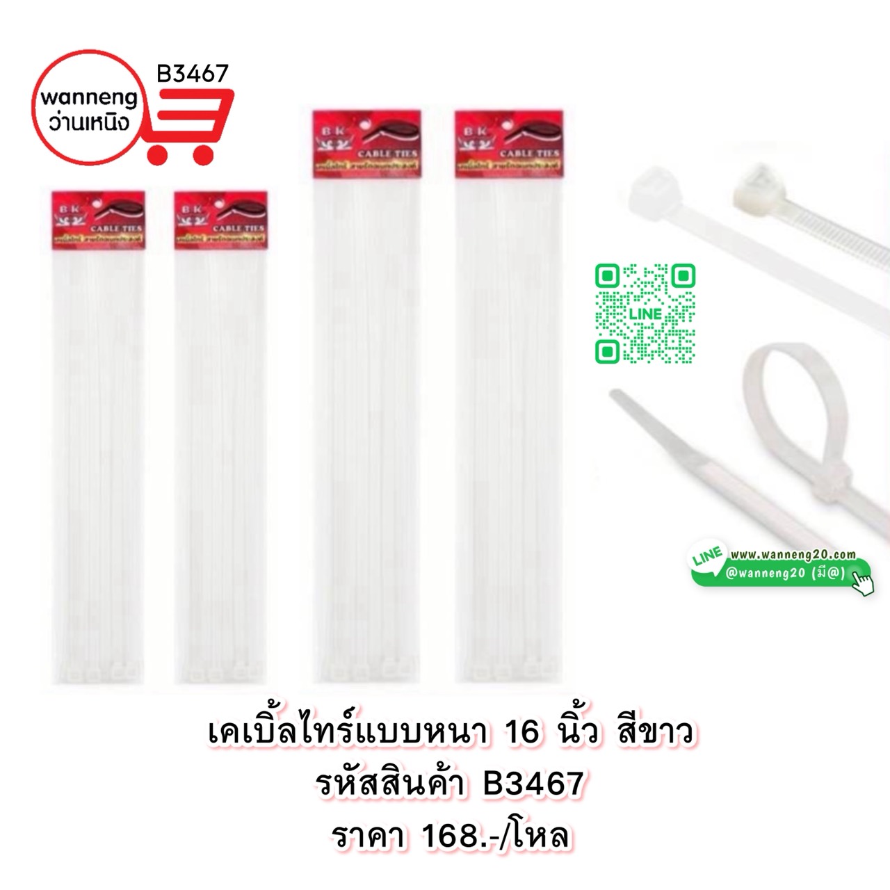 B3467 เคเบิ้ลไทร์แบบหนา 16 นิ้ว สีขาว 1 โหล