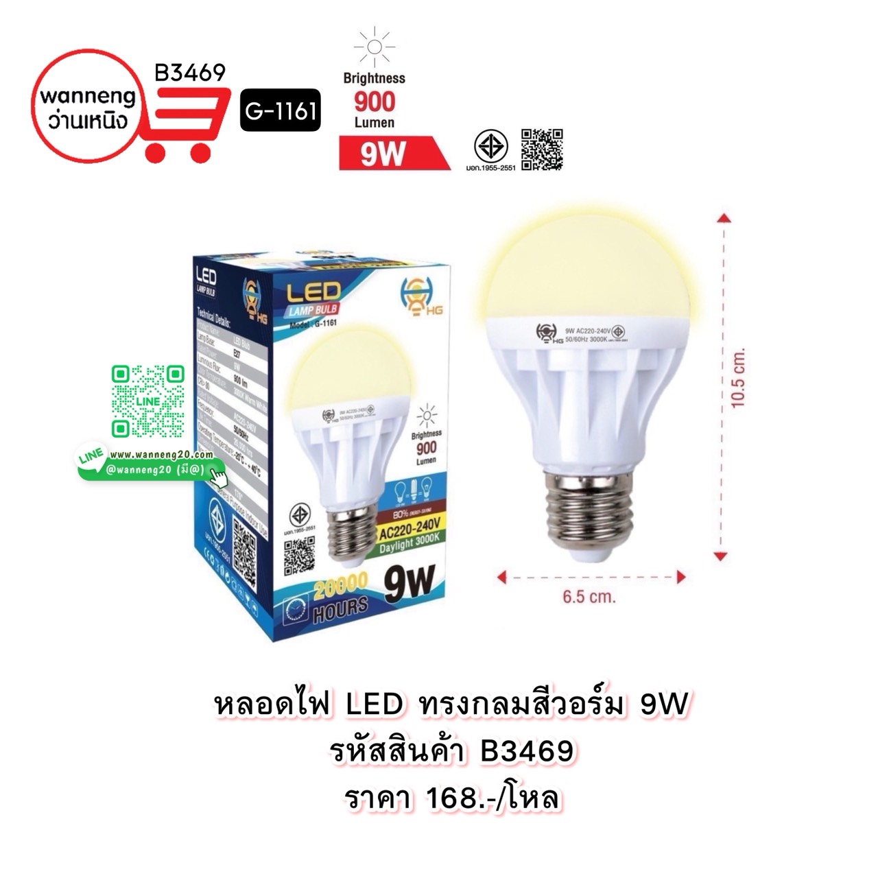 B3469 หลอดไฟ LED ทรงกลมสีวอร์ม 9W G-1161 1 โหล
