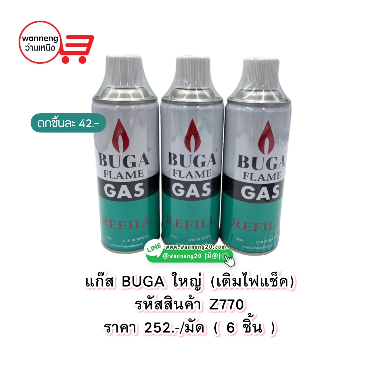 Z770 แก๊ส BUGA ใหญ่ (เติมไฟแช็ค) 1มัด 6 ชิ้น
