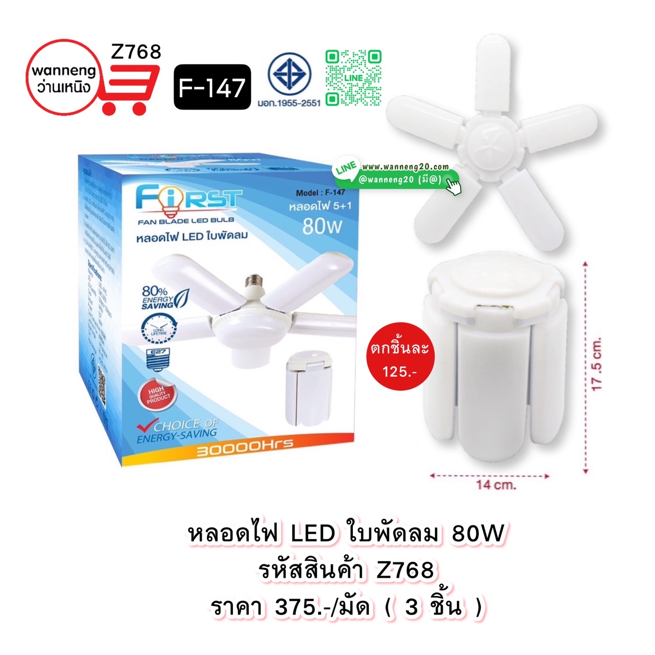 Z768 หลอดไฟ LED ใบพัดลม 80W F-147 1 มัด 3 ชิ้น