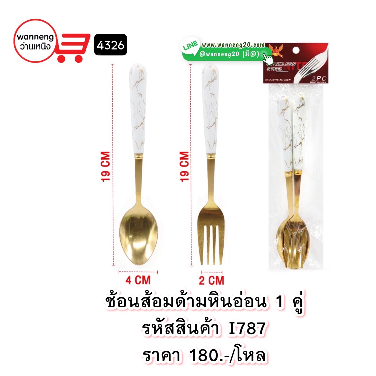 I787 ช้อนส้อมด้ามหินอ่อน 1 คู่ 4326 1 โหล