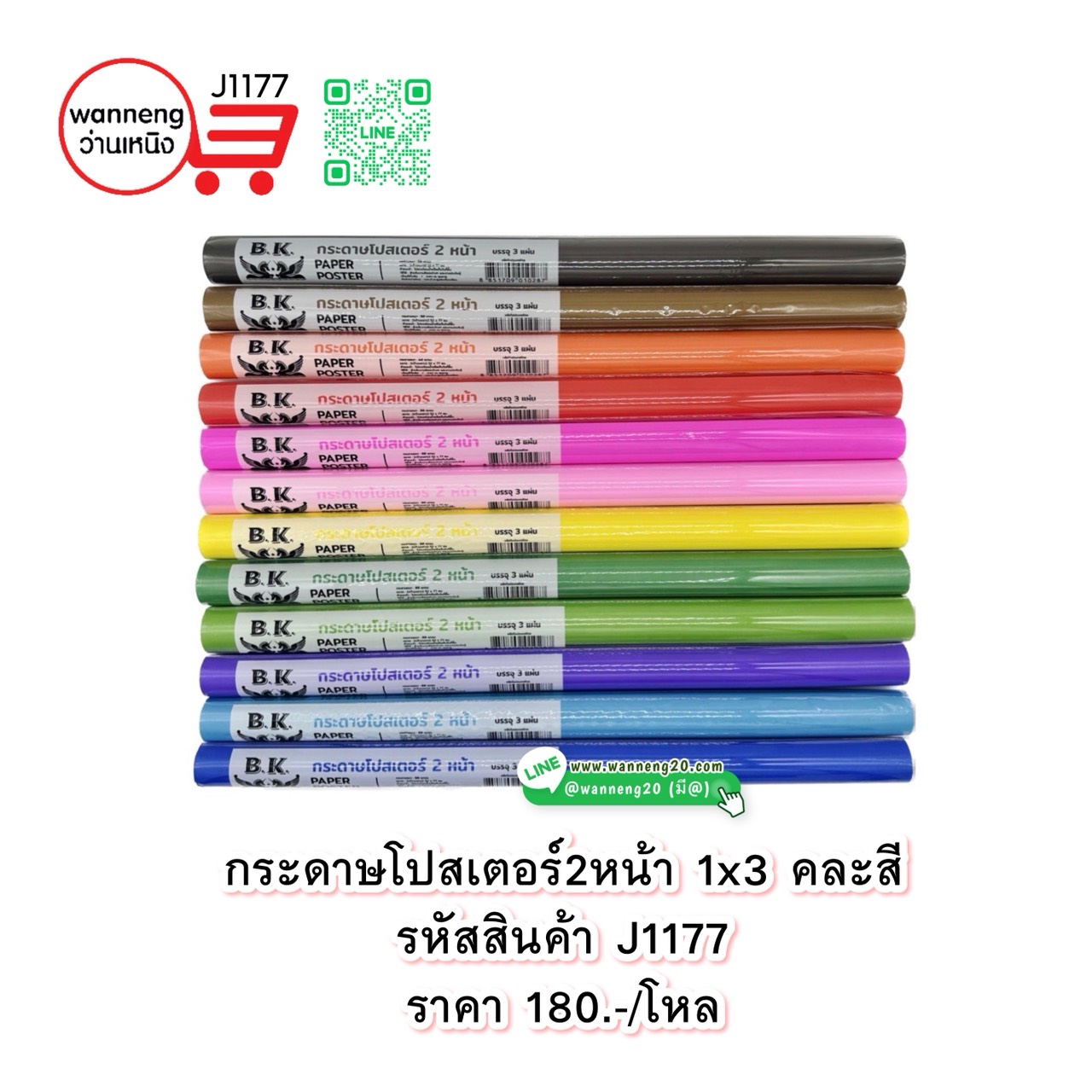J1177 กระดาษโปสเตอร์2หน้า 1x3 คละสี BK 1 โหล