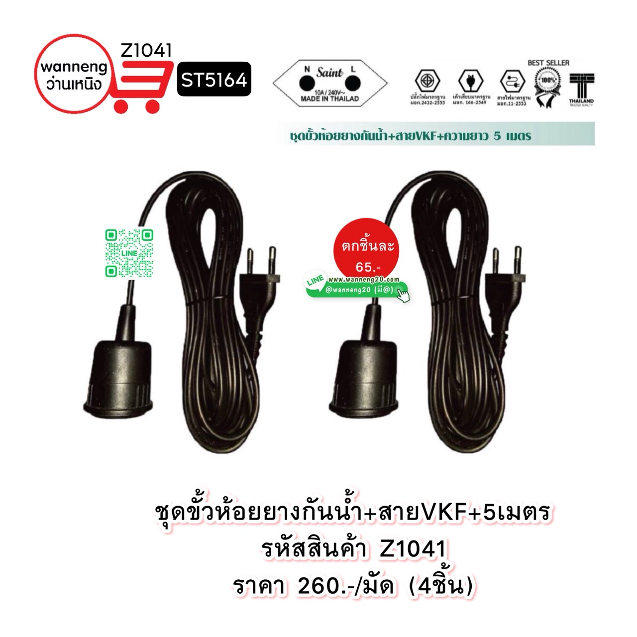 Z1041 ชุดขั้วห้อยยางกันน้ำ+สายVKF + 5 เมตร ST5164 1 มัด 4 ชิ้น