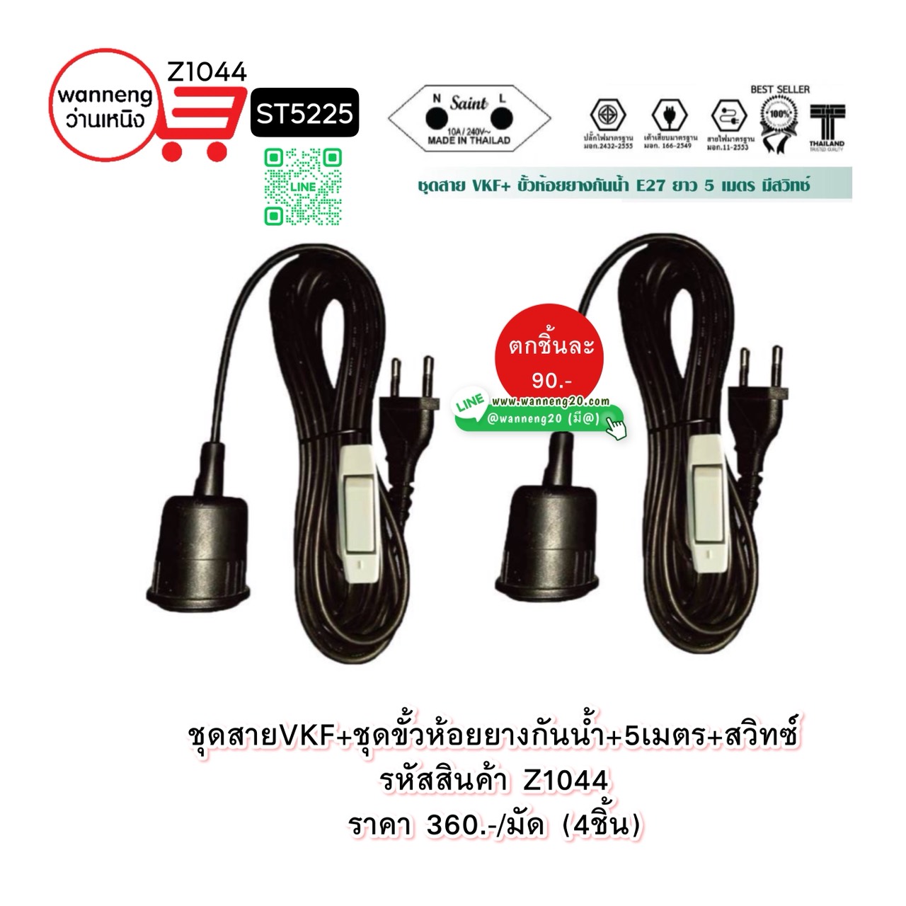 Z1044 ชุดสายVKF+ขั้วห้อยยางกันน้ำ + 5 เมตร ST5225 1 มัด 4 ชิ้น