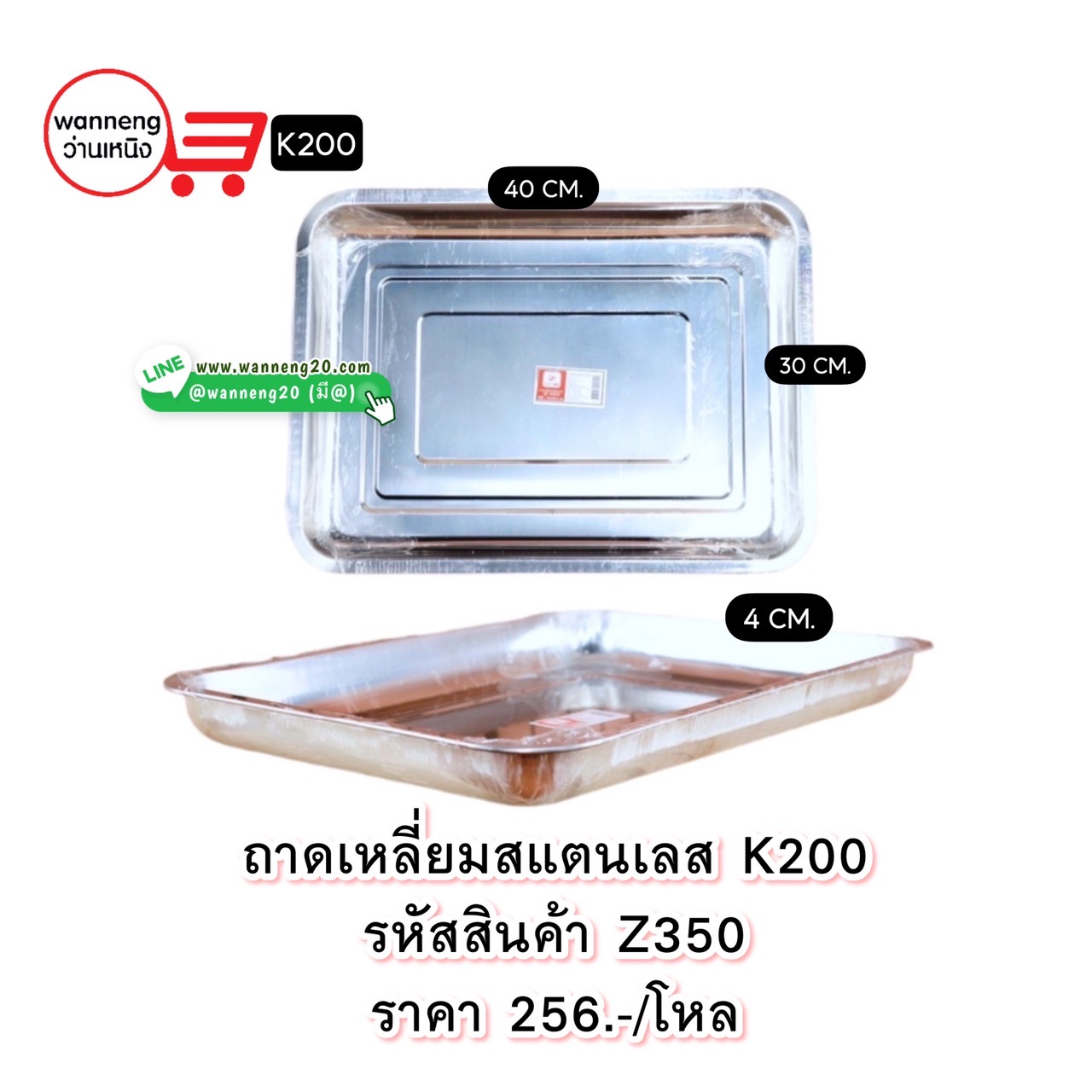 Z350 ถาดเหลี่ยมสแตนเลส 40x30x4CM. 1 โหล