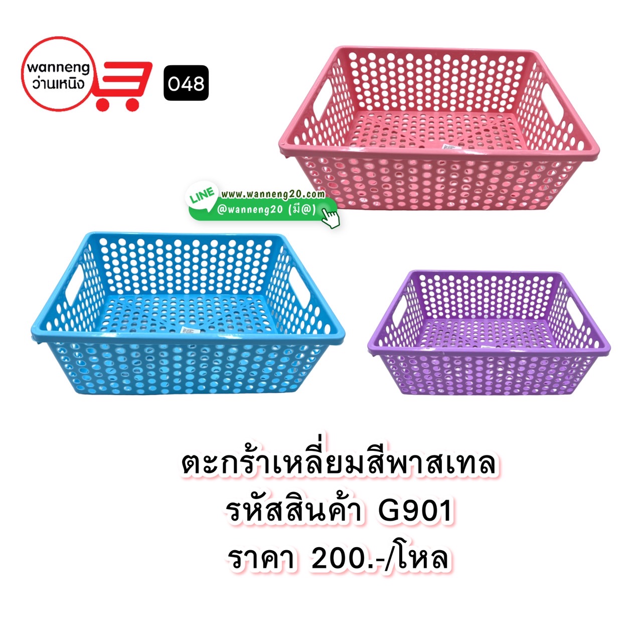G901 ตะกร้าเหลี่ยมสีพาสเทล 048 1 โหล