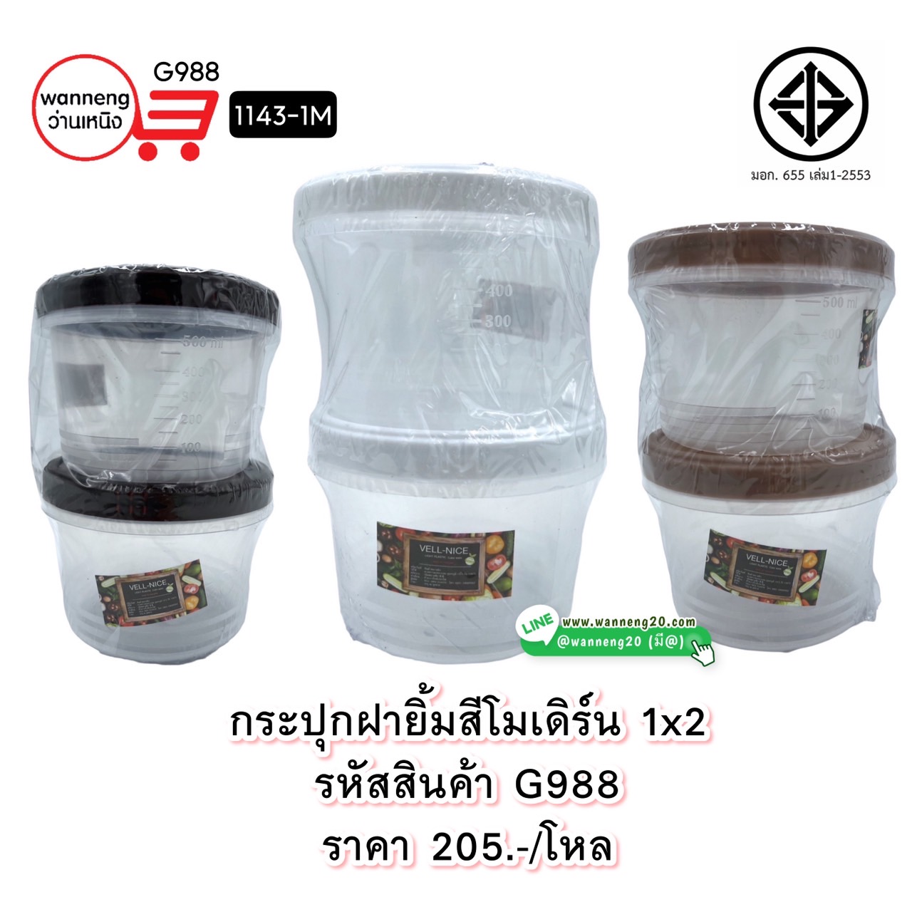 G988 กระปุกฝายิ้มฝาสีโมเดิร์น 1x2 1143-1M 1 โหล