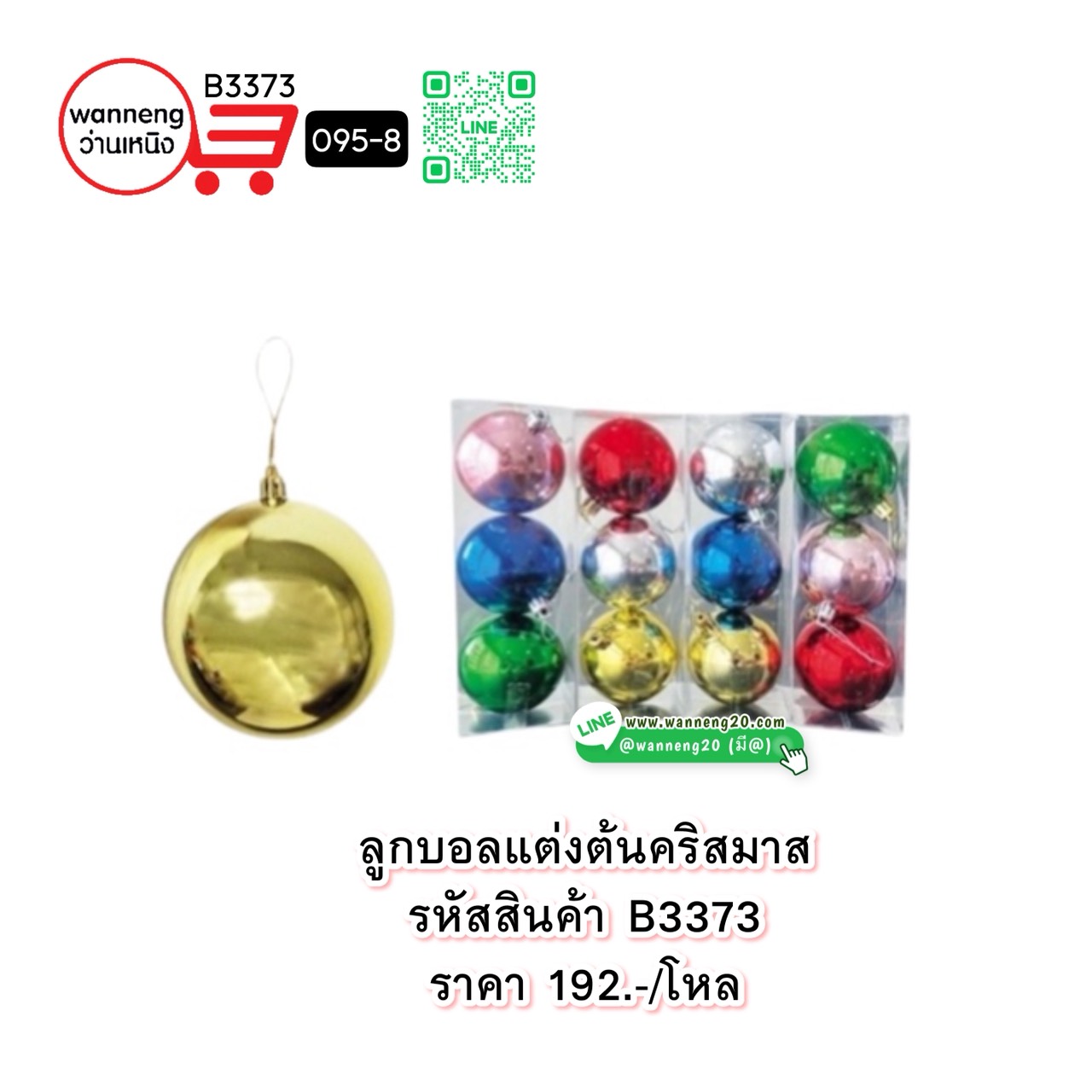 B3373 ลูกบอกแต่งต้นคริสมาส 095-8 1 โหล