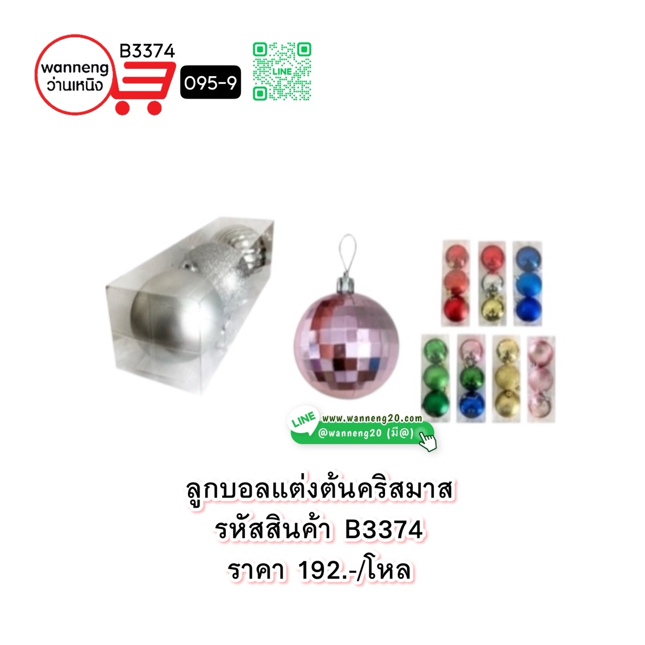 B3374 ลูกบอลแต่งต้นคริสมาส 095-9 1 โหล