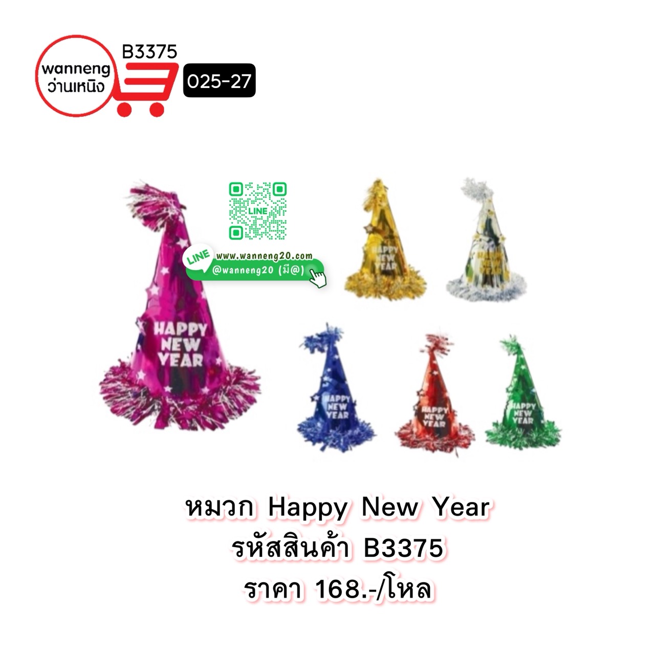 B3375 หมวก Happy New Year 025-27 1 โหล