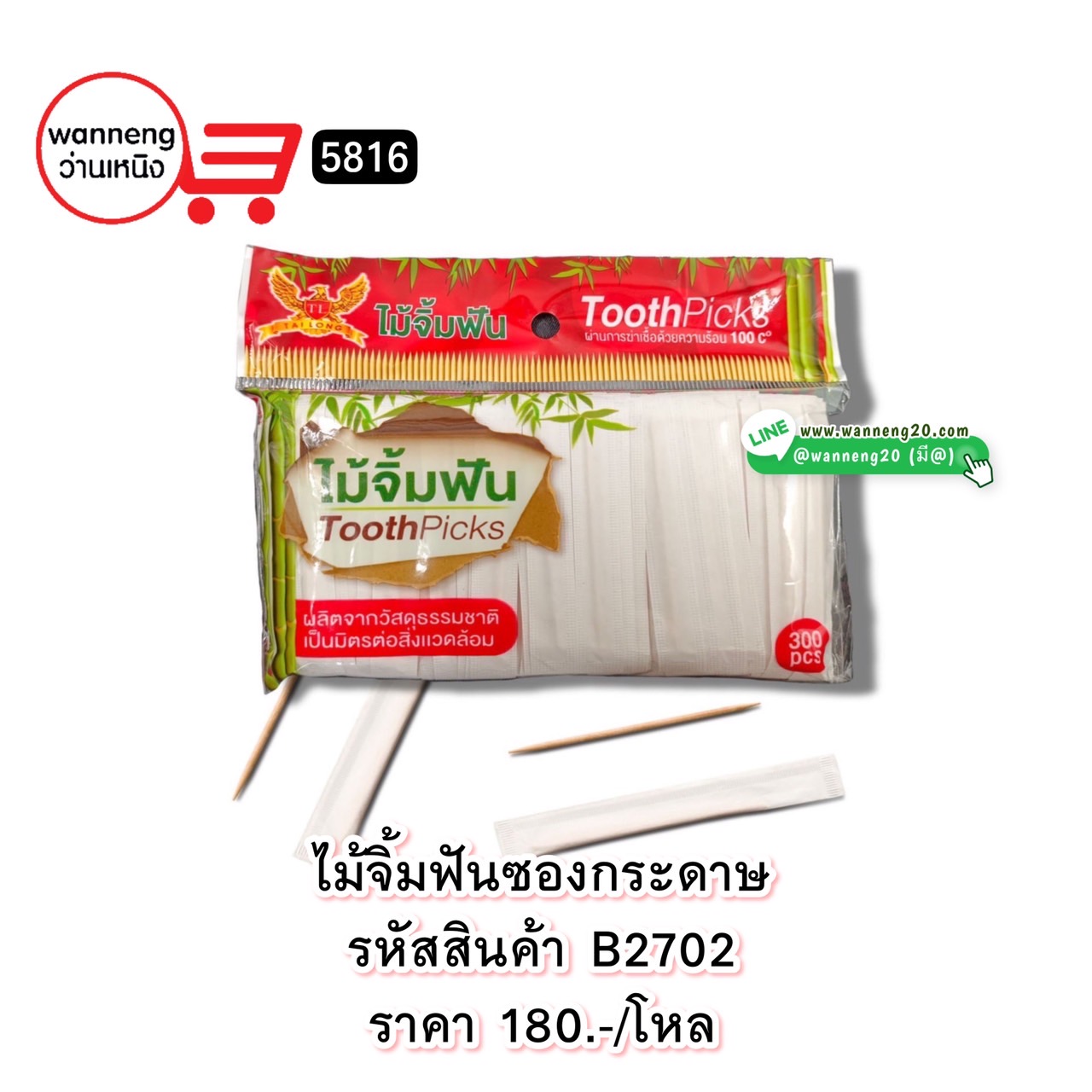 B2702 ไม้จิ้มฟันซองกระดาษ 5816 1 โหล