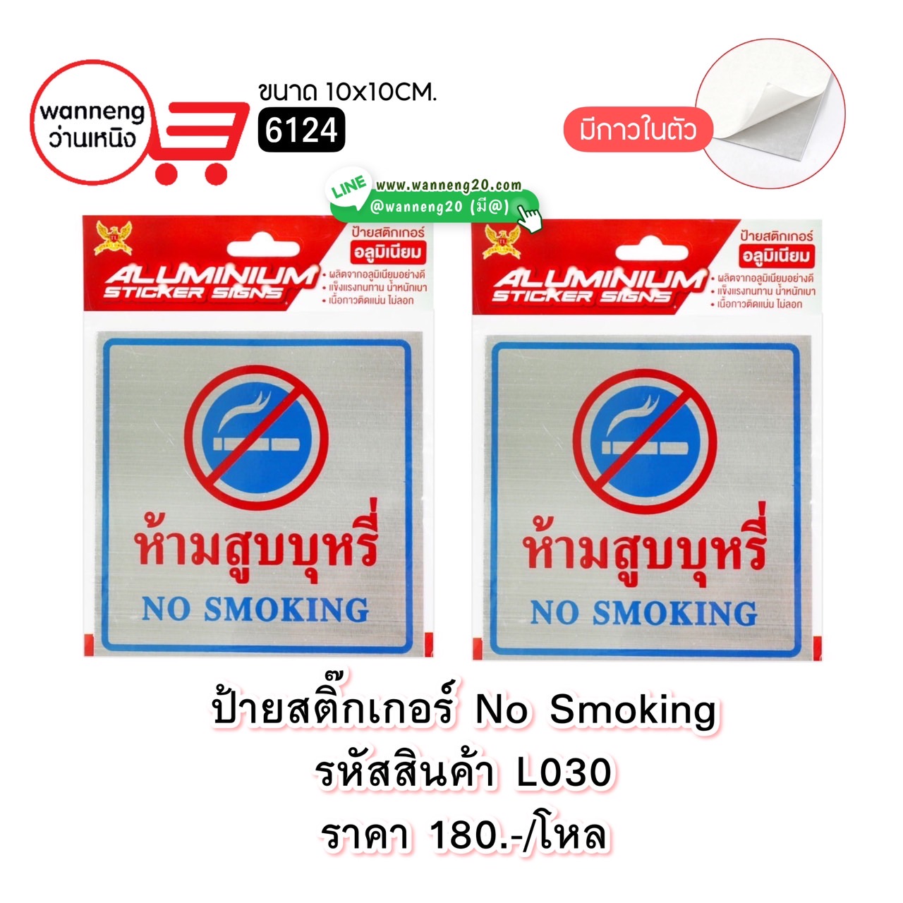 L030 ป้ายสติ๊กเกอร์ 10x10 CM. No Smoking 6124 1 โหล