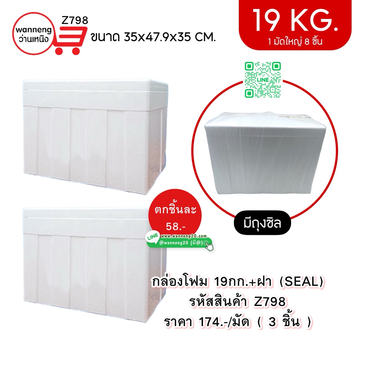 Z798 กล่องโฟม 19 กก.+ ฝา (SEAL) 1 มัด 3 ชิ้น