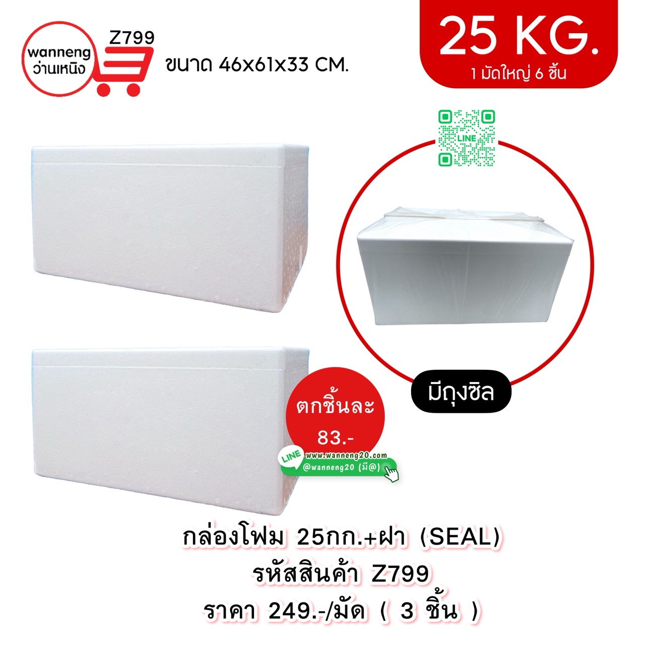 Z799 กล่องโฟม 25 กก.+ ฝา (SEAL) 1 มัด 3 ชิ้น