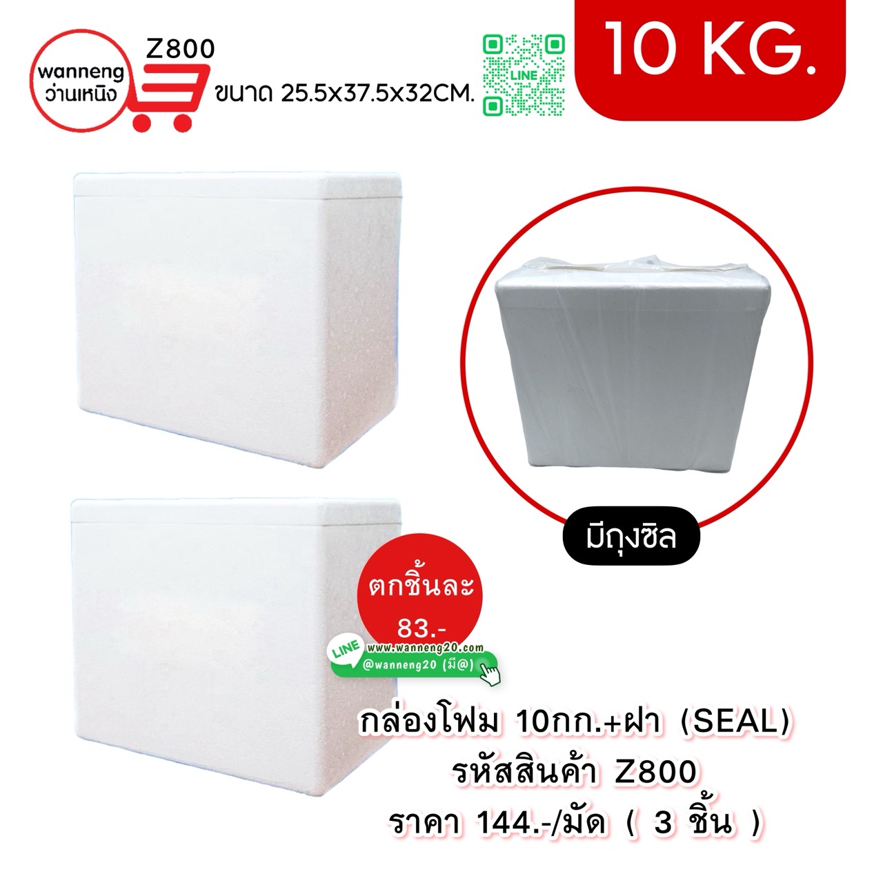 Z800 กล่องโฟม 10 กก. + ฝา ( SEAL ) 1 มัด 3 ชิ้น