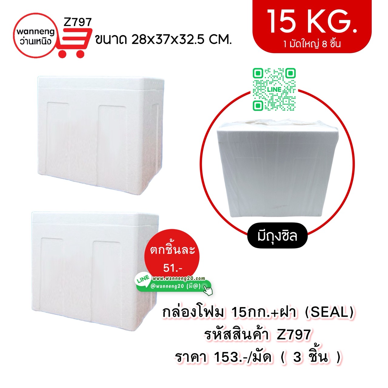 Z797 กล่องโฟม 15 กก.+ ฝา (SEAL) 1 มัด 3 ชิ้น