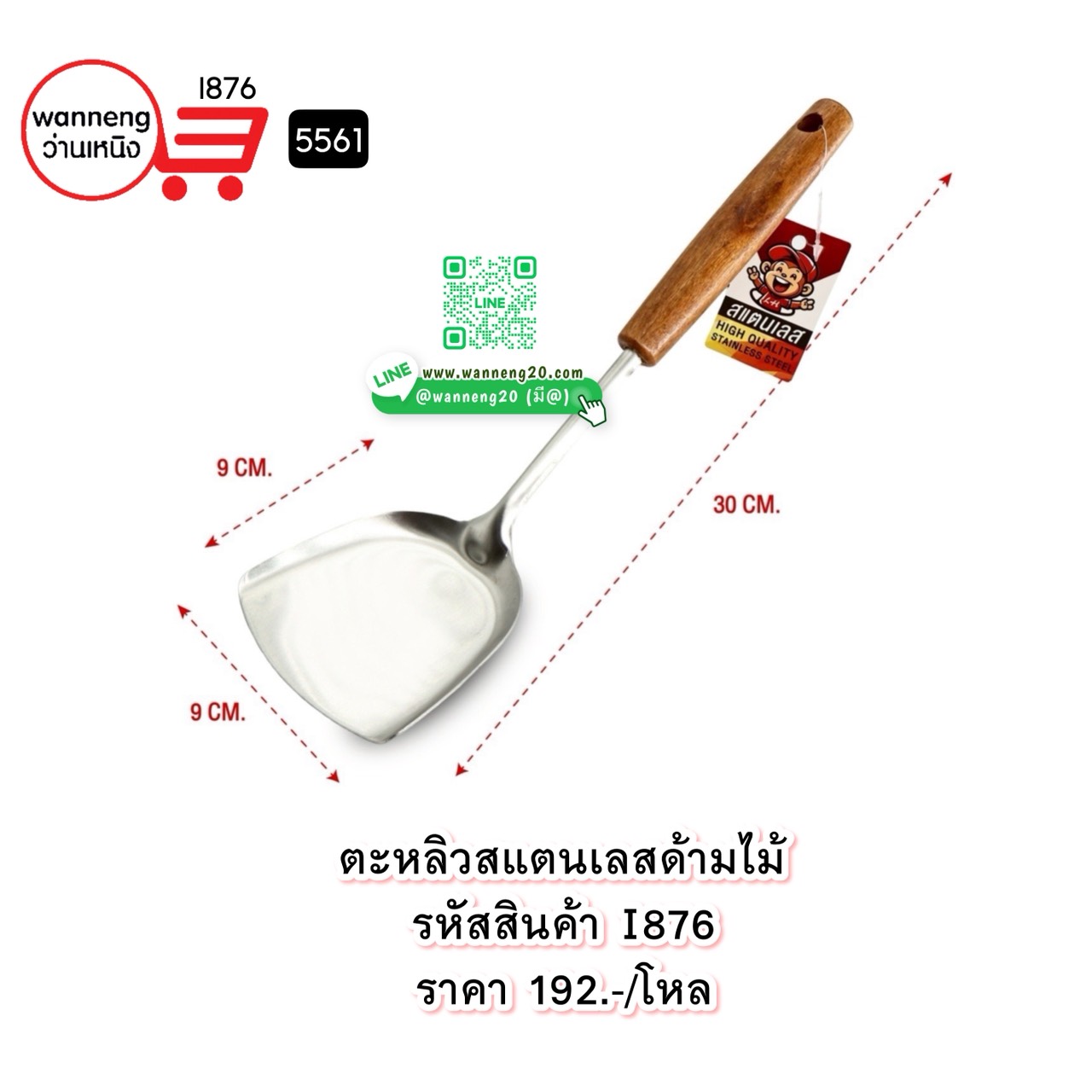 I876 ตะหลิวสแตนเลสด้ามไม้ 5561 1 โหล