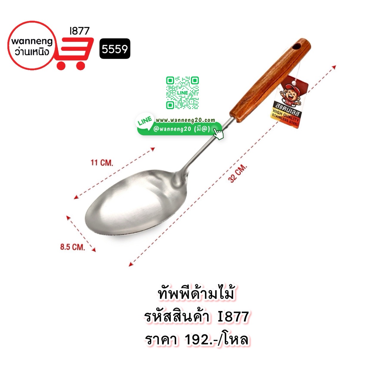 I877 ทัพพีด้ามไม้ 5559 1 โหล