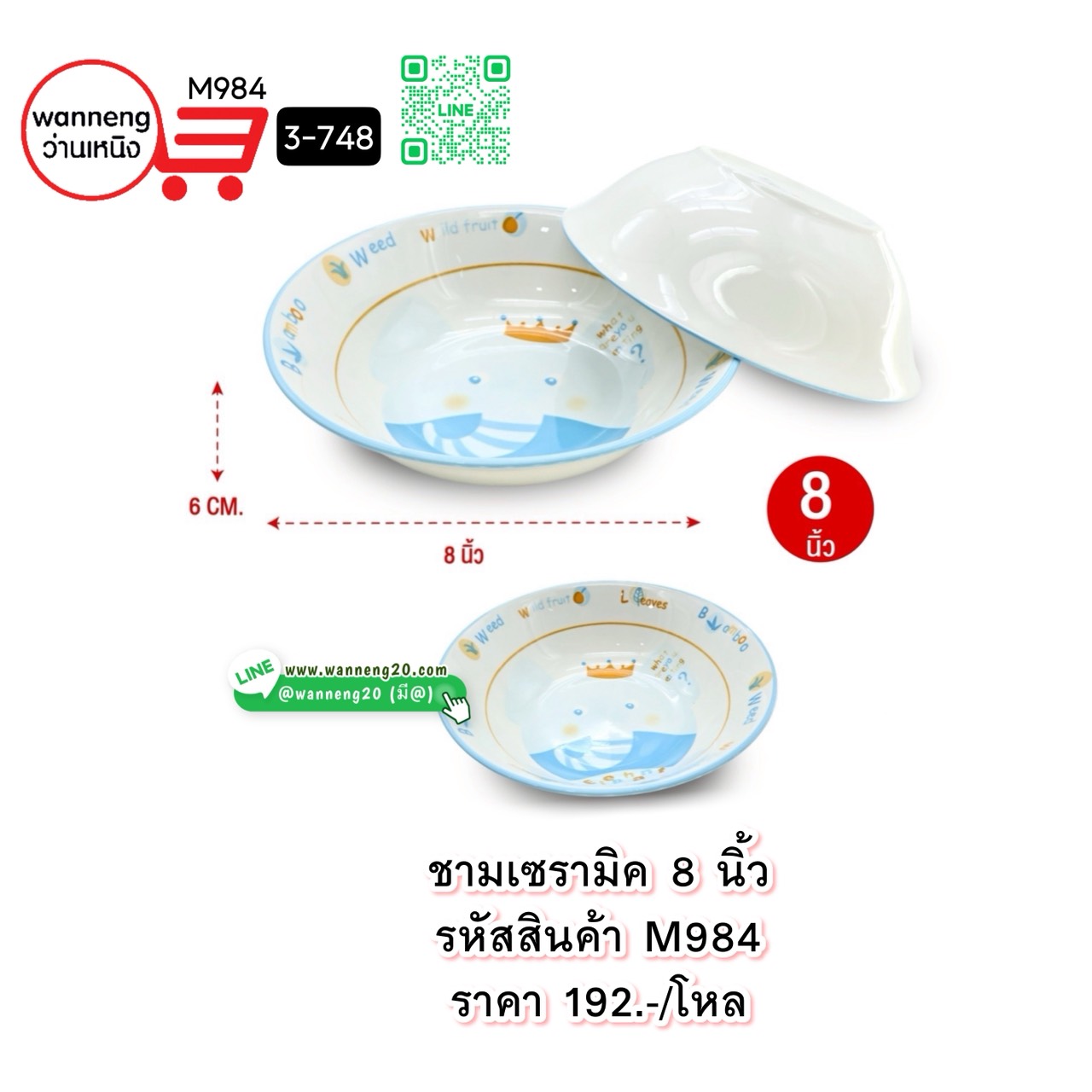 M984 ชามเซรามิค 8 นิ้ว 3-748 1 โหล