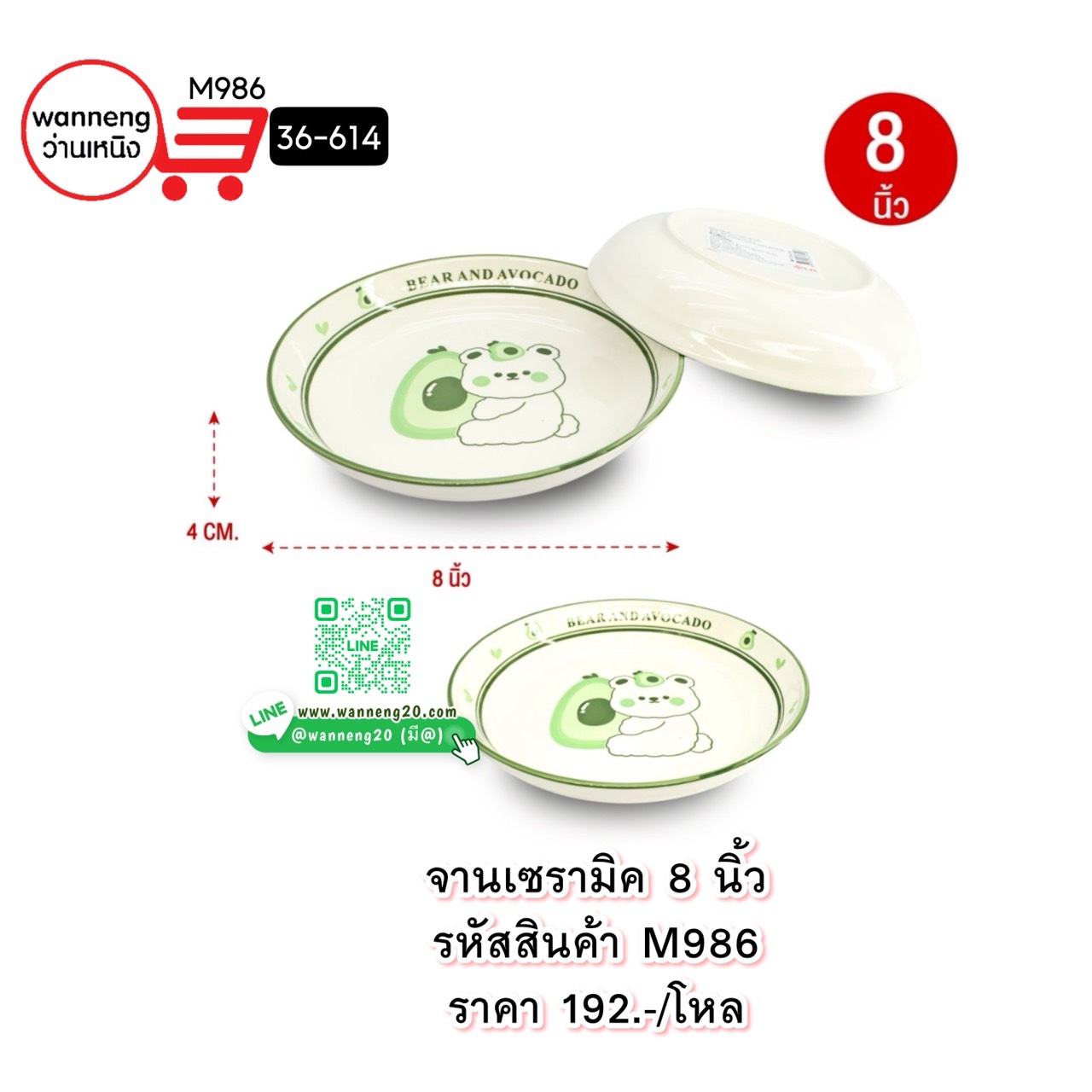 M986 จานเซรามิค 8 นิ้ว 36-614 1 โหล