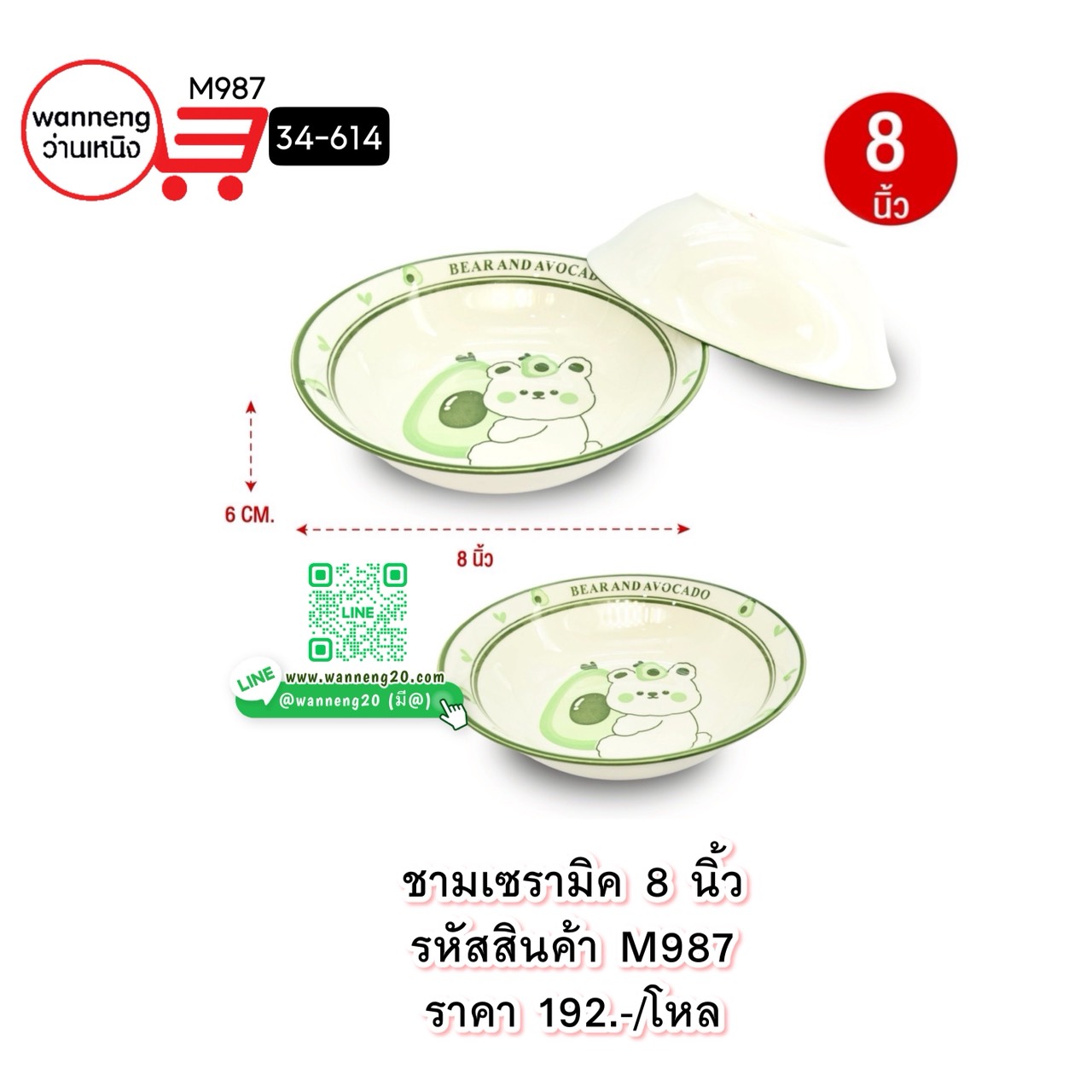 M987 ชามเซรามิค 8 นิ้ว 34-614 1 โหล