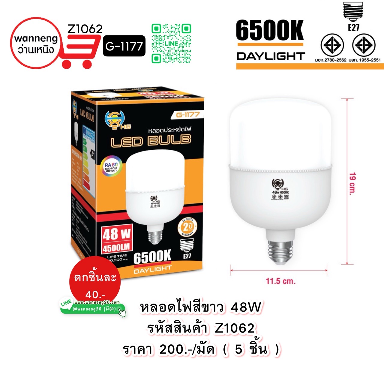 Z1062 หลอดไฟสีขาว 48W G-1177 1 มัด 5 ชิ้น