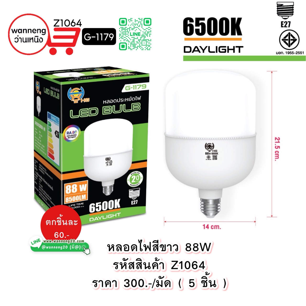 Z1064 หลอดไฟสีขาว 88W G-1179 1 มัด 5 ชิ้น