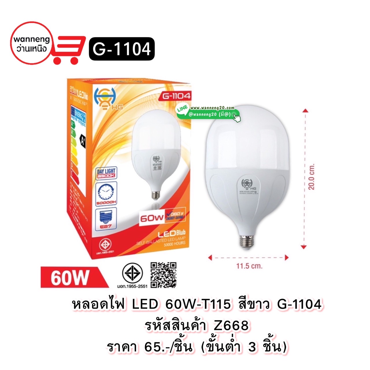 Z668 หลอดไฟLED 60W-T115 สีขาว G-1104 ขั้นต่ำ 3 ชิ้น