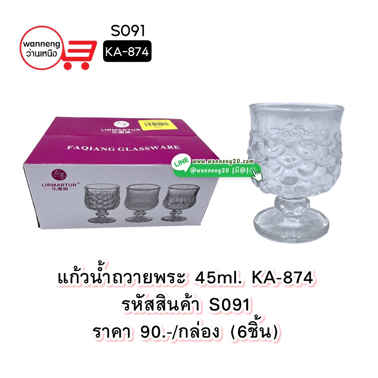 S091 แก้วน้ำถวายพระ 45ml. KA-874 1 กล่อง 6 ใบ