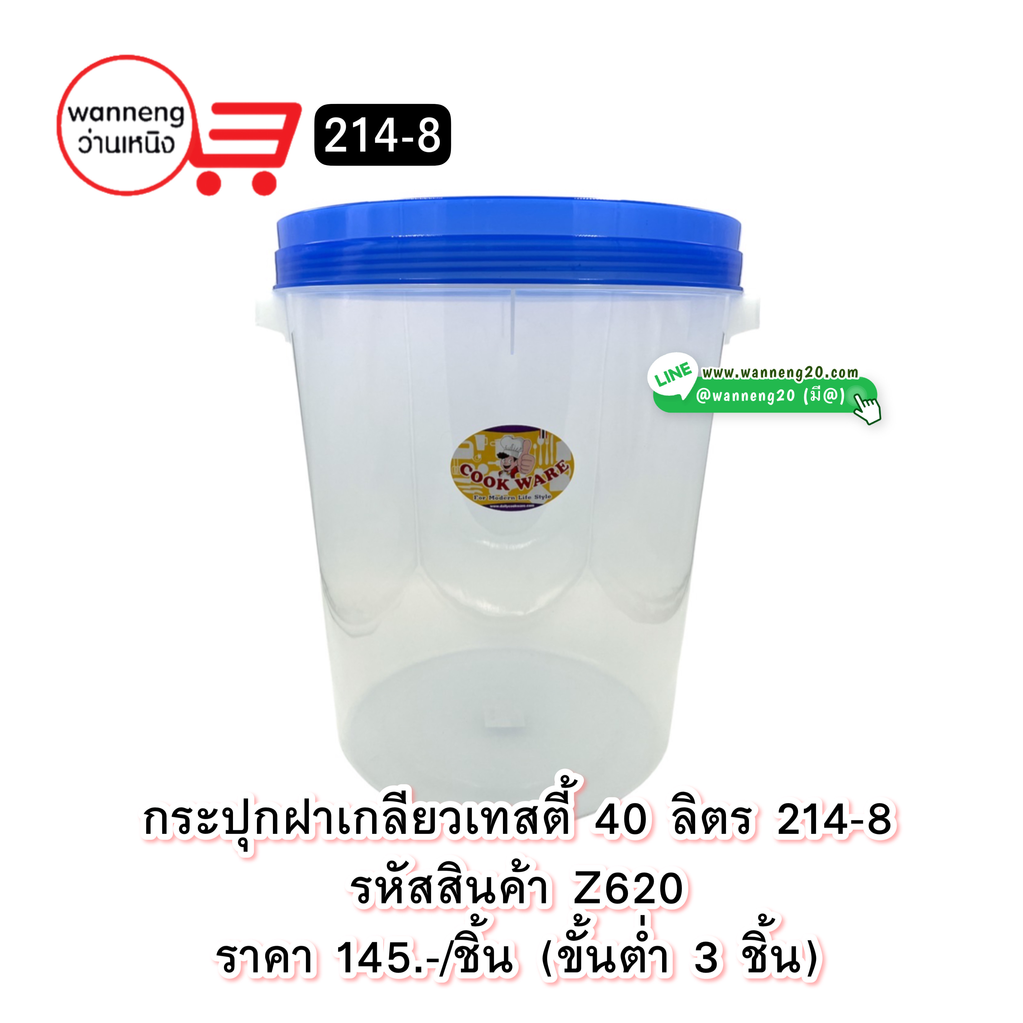 Z620 กระปุกฝาเกลียวเทสตี 40 ลิตร 214-8 1ขั้นต่ำ 3 ชิ้น