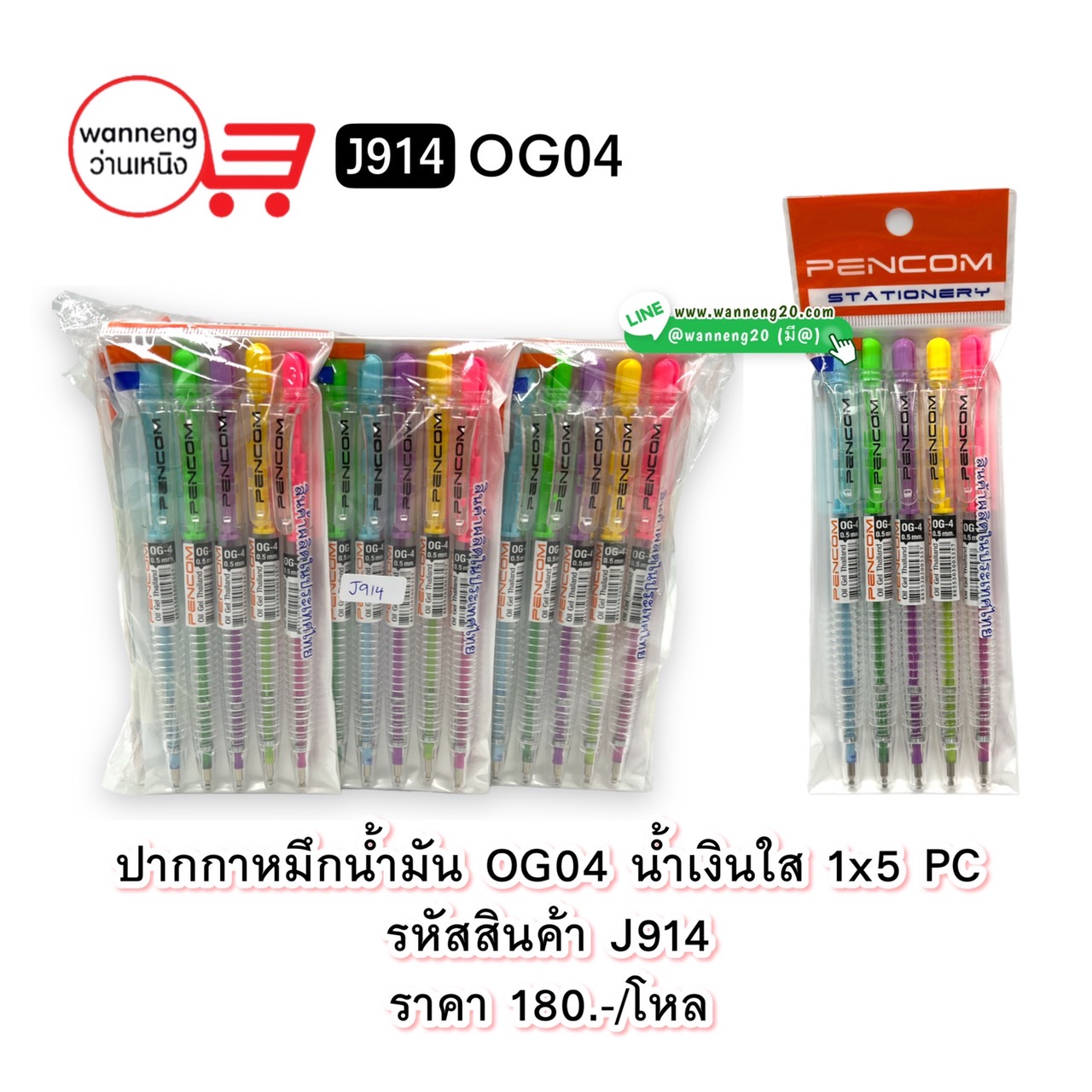 J914 ปากกาหมึกน้ำมัน OG04 น้ำเงินใส 1x5 PC 1 โหล