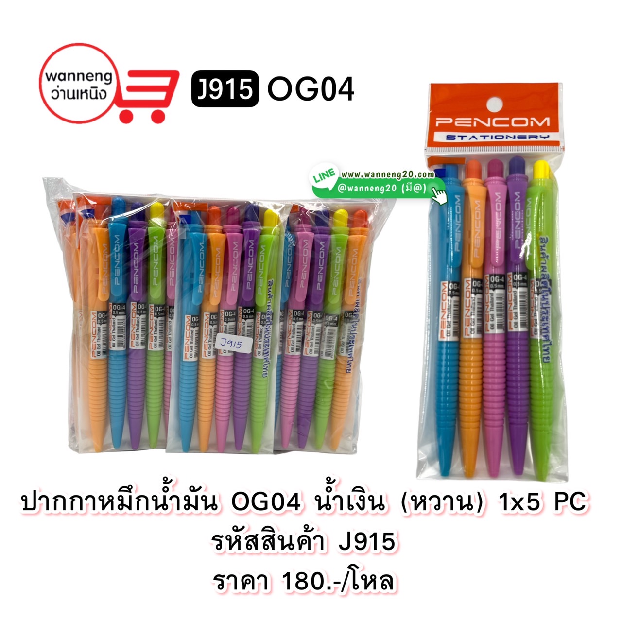 J915 ปากกาหมึกน้ำมัน OG04 น้ำเงิน (หวาน) 1x5 PC 1 โหล