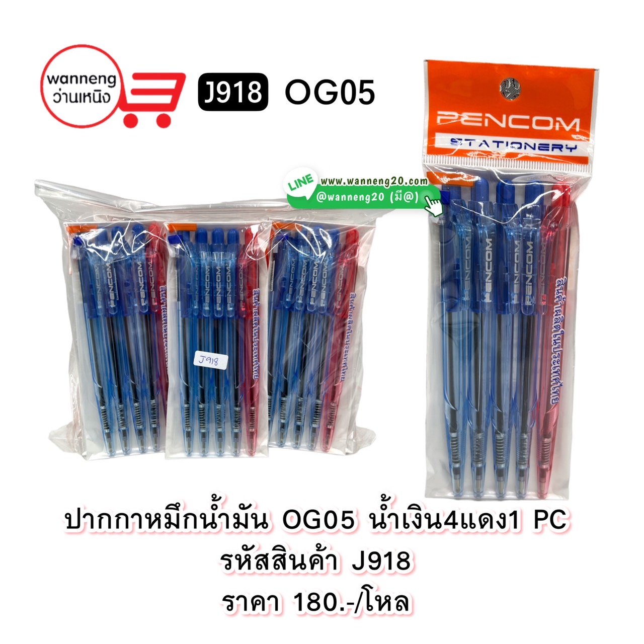 J918 ปากกาหมึกน้ำมัน OG05 น้ำเงิน4แดง 1 PC 1 โหล