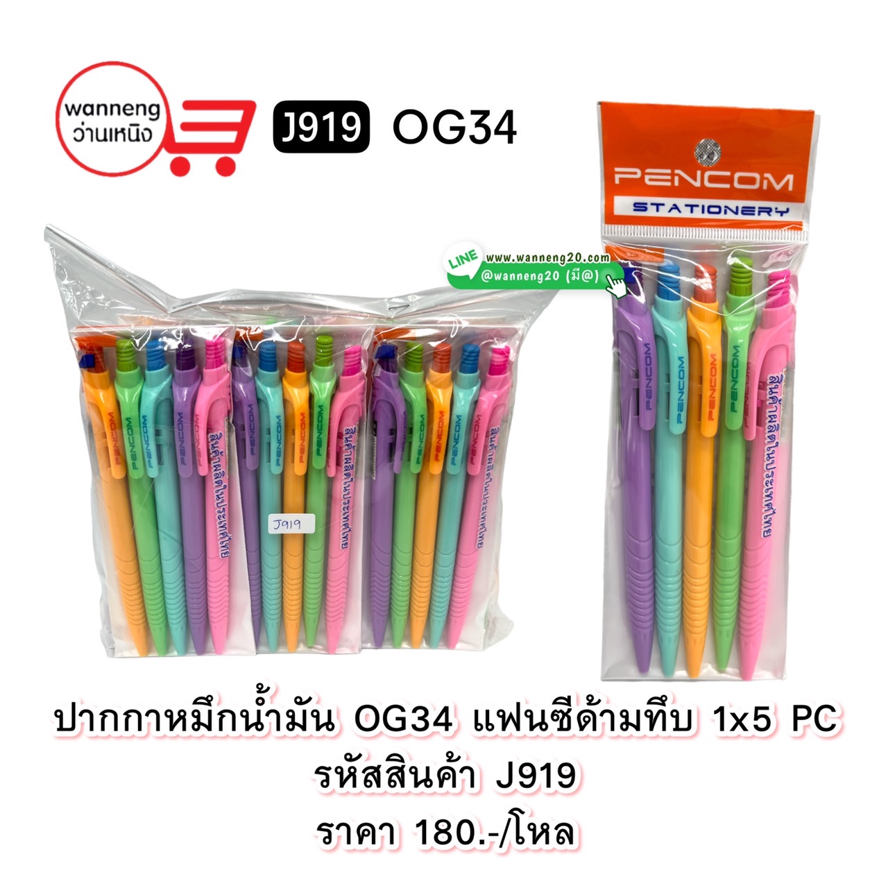 J919 ปากกาหมึกน้ำมัน OG34 แฟนซีด้ามทึบ 1x5 PC 1 โหล