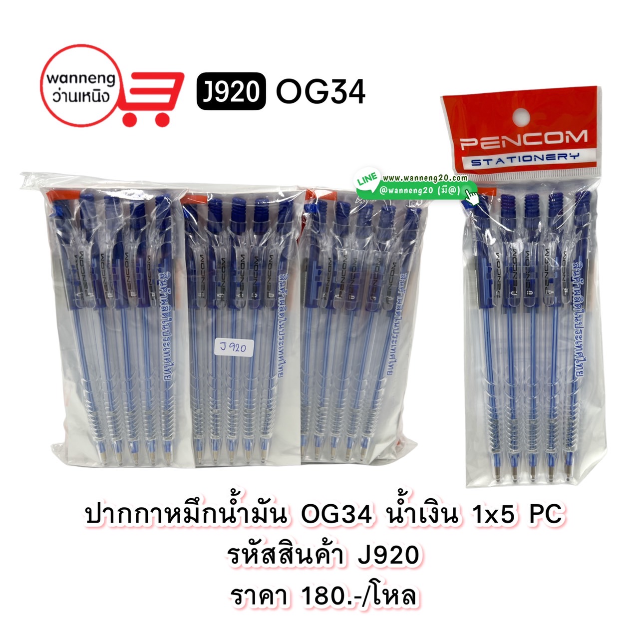 J920 ปากกาหมึกน้ำมัน OG34 น้ำเงิน 1x5 PC 1 โหล