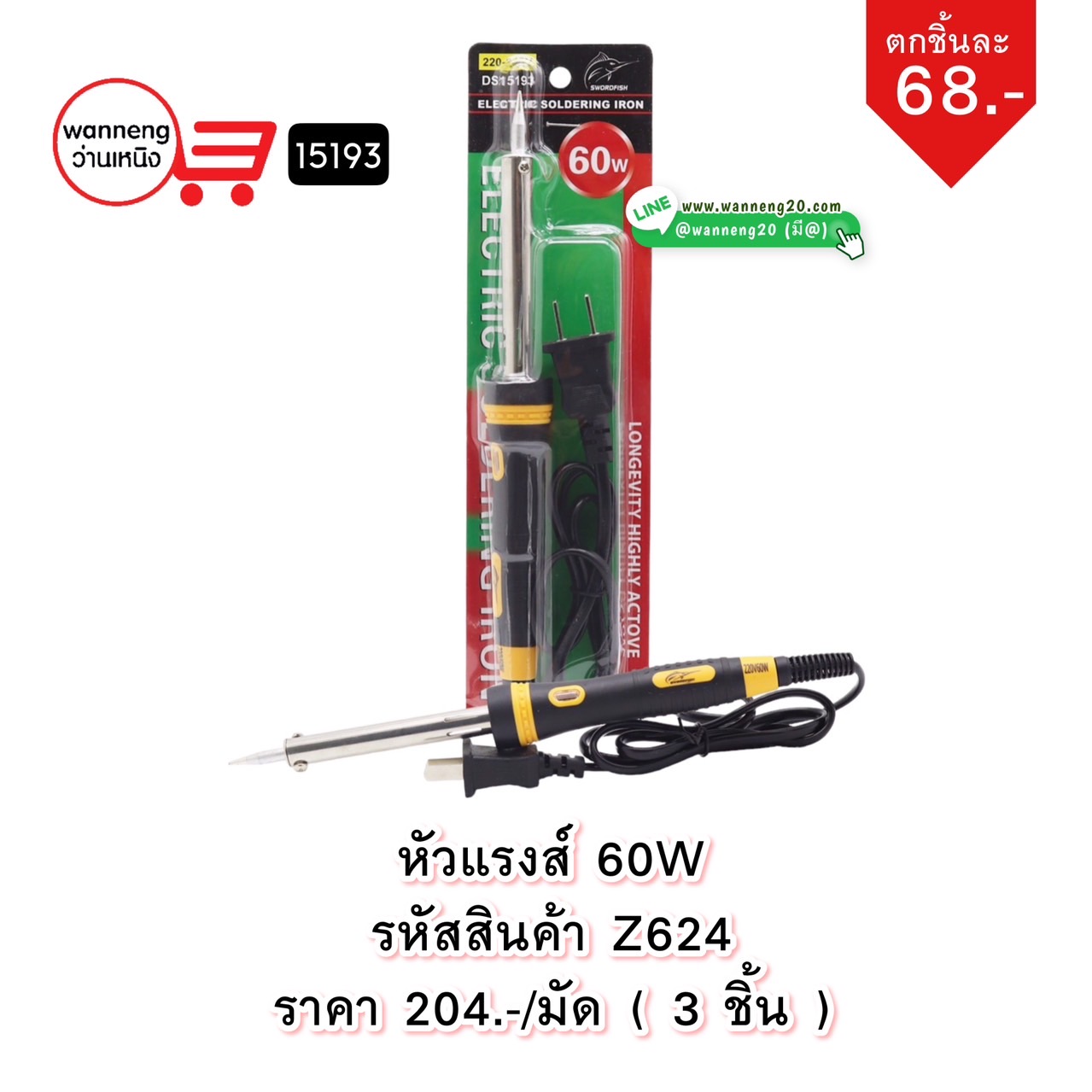 Z624 หัวแรงส์ 60W DS15193 1 มัด 3 ชิ้น