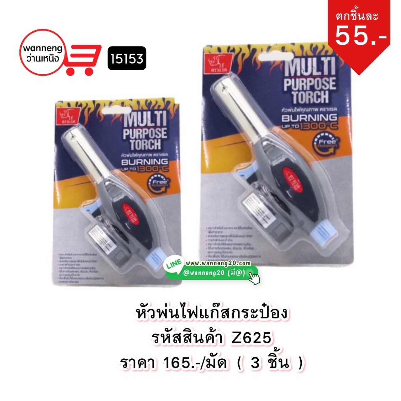 Z625 หัวพ่นไฟแก๊สกระป๋อง DS15153 1 มัด 3 ชิ้น