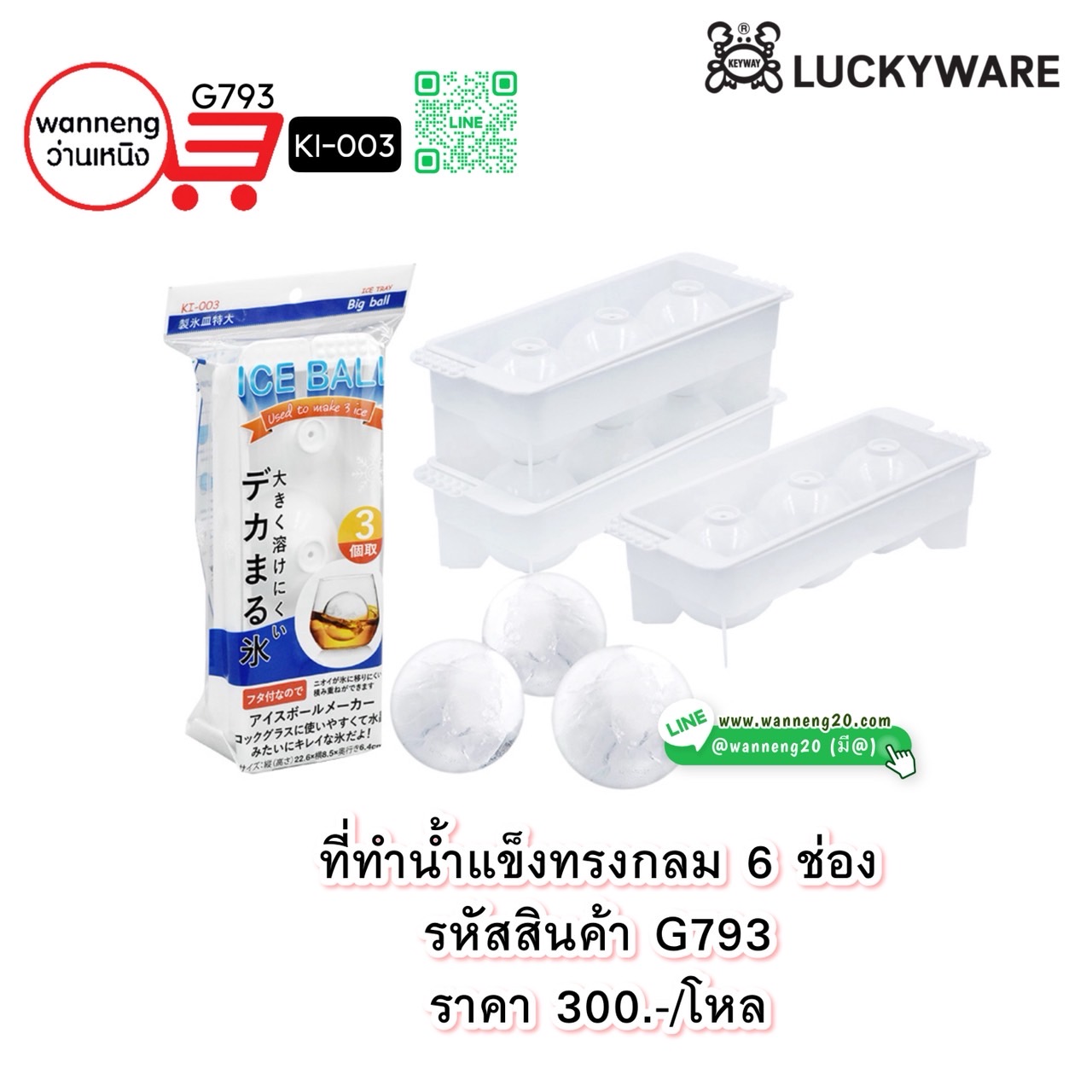 G793 ที่ทำน้ำแข็งทรงกลม 6 ช่อง KI-003 1 โหล
