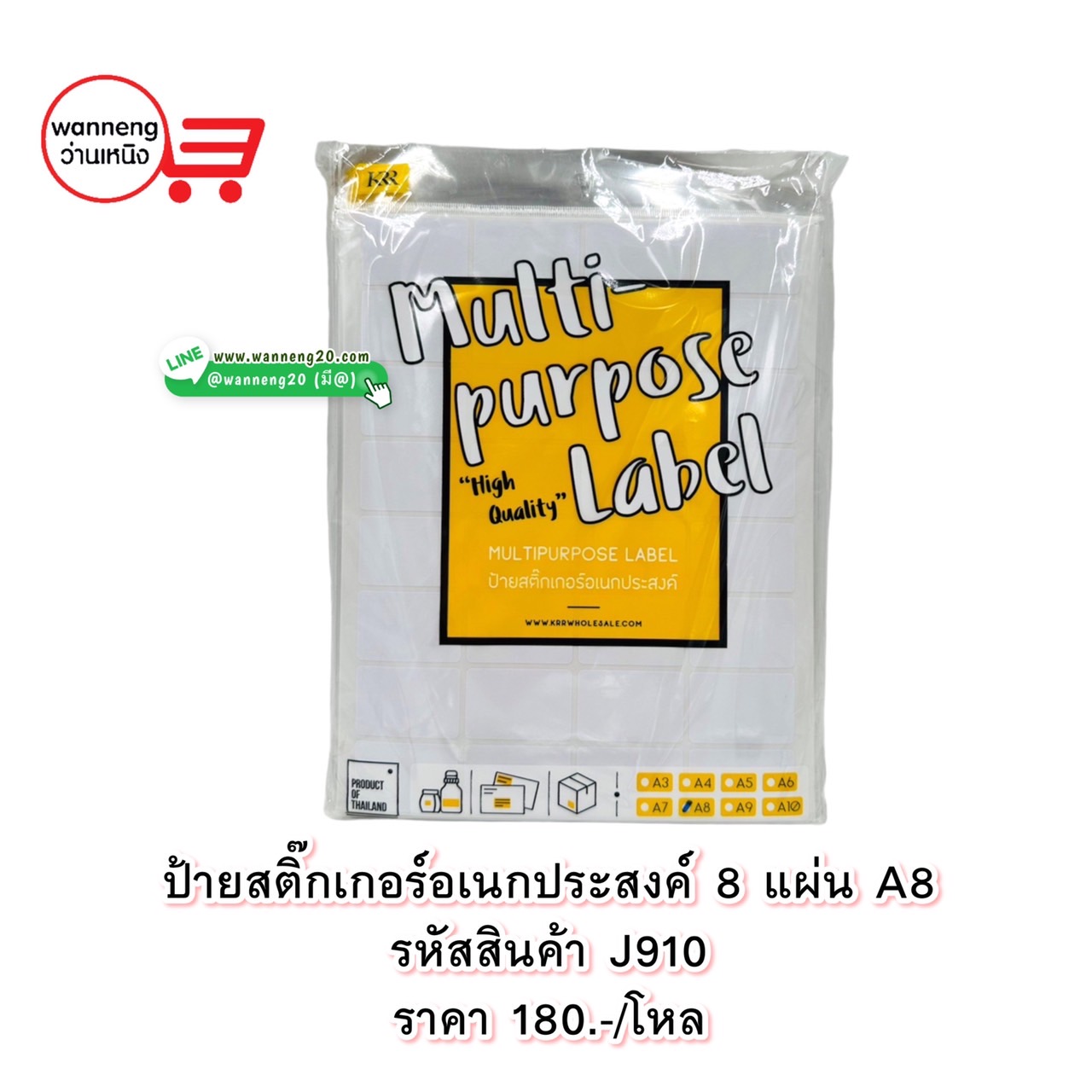 J910 ป้ายสติ๊กเกอร์อเนกประสงค์ 8 แผ่น A8 1 โหล