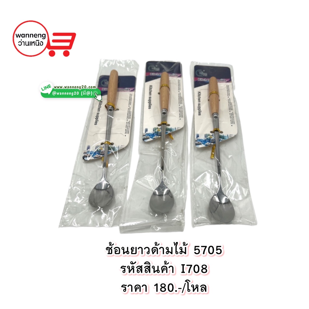 I708 ช้อนยาวด้ามไม้ 5705 1 โหล