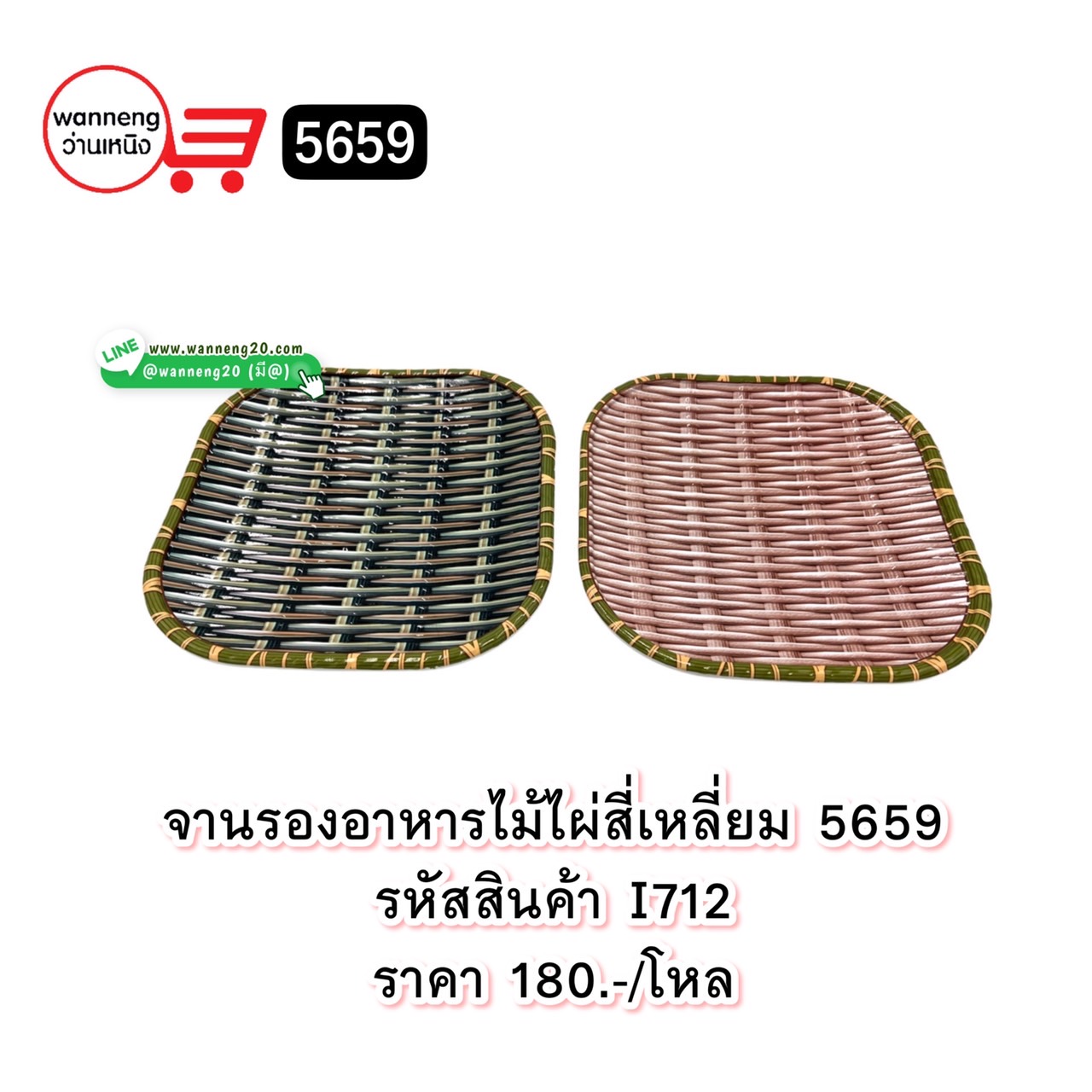 I712 จานรองอาหารไม้ไผ่สีเหลี่ยม 5659 1 โหล