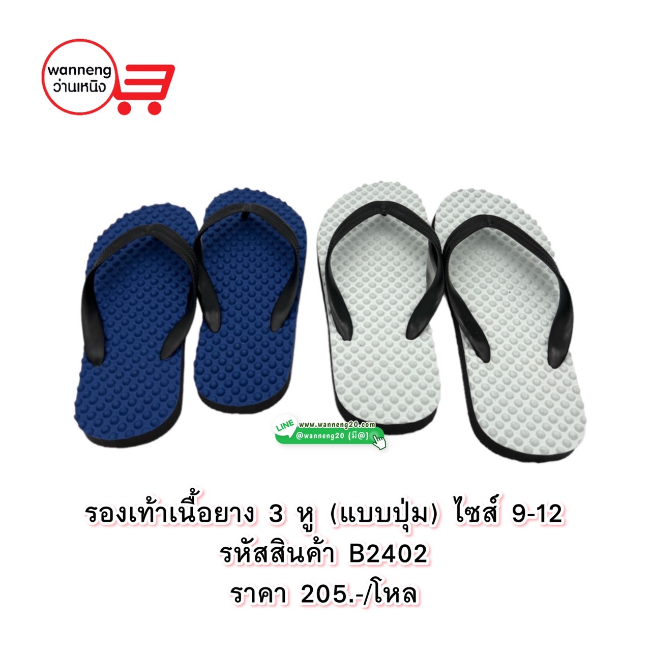 B2402 รองเท้าเนื้อยาง 3 หู (แบบปุ่ม) ไซส์ 9-12 1 โหล