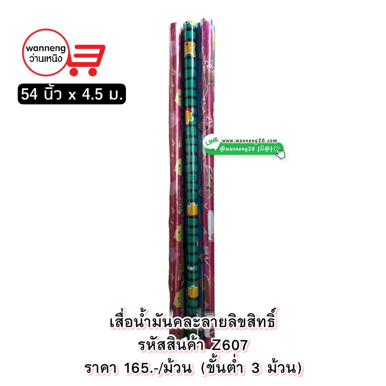 Z607 เสื่อน้ำมันคละลายลิขสิทธิ์ 54 นิ้ว x 4.5 เมตร แกนม้วน (ขั้นต่ำ 3 ม้วน)