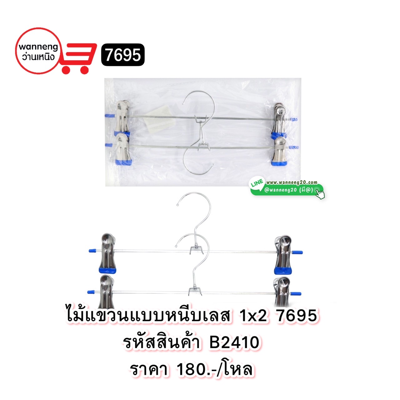 B2410 ไม้แขวนแบบหนีบเลส 1x2 7695 1 โหล