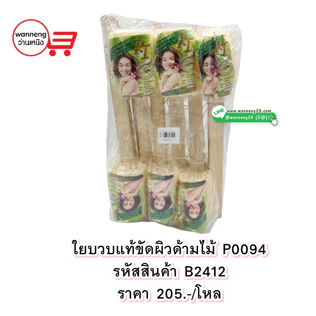 B2412 ใยบวบแท้ขัดผิวด้ามไม้ PT 1 โหล