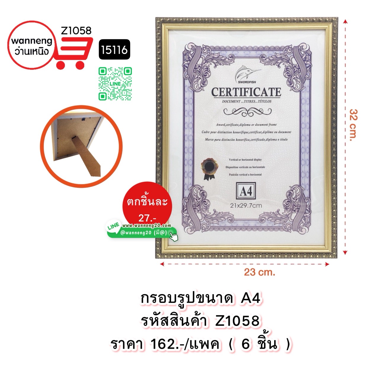 Z1058 กรอบรูปขนาด A4 15116 1 แพค ( 6 ชิ้น )