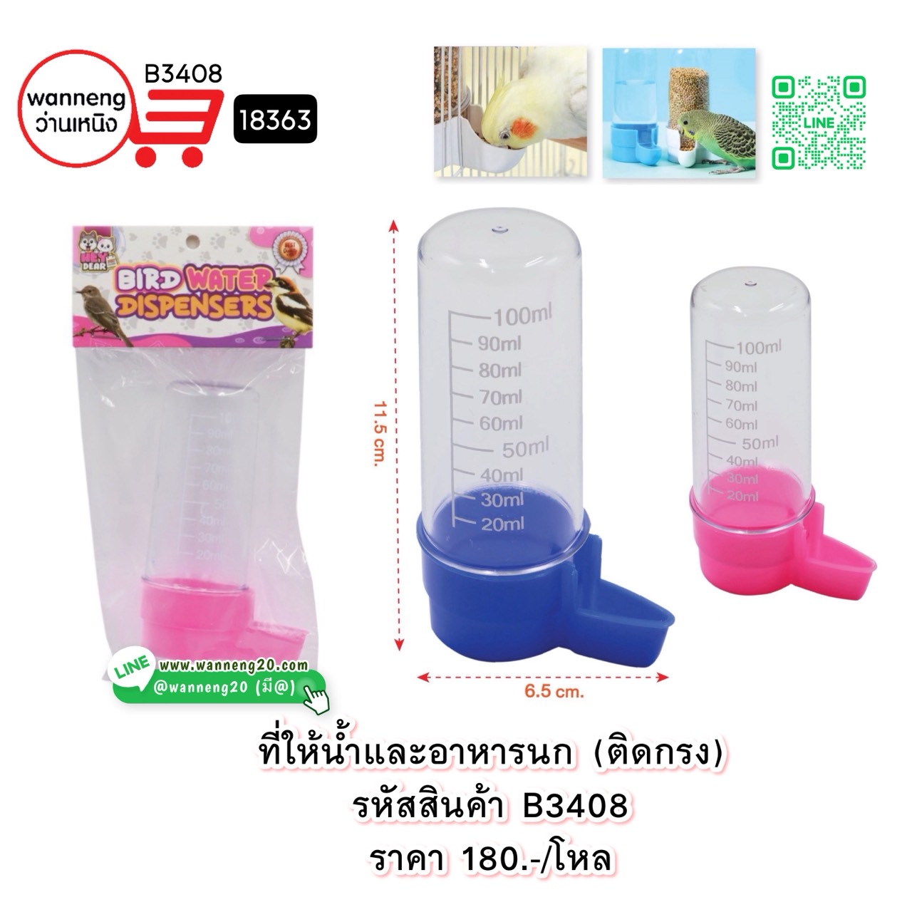 B3408 ที่ให้น้ำและอาหารนก (ติดกรง) 18363 1 โหล